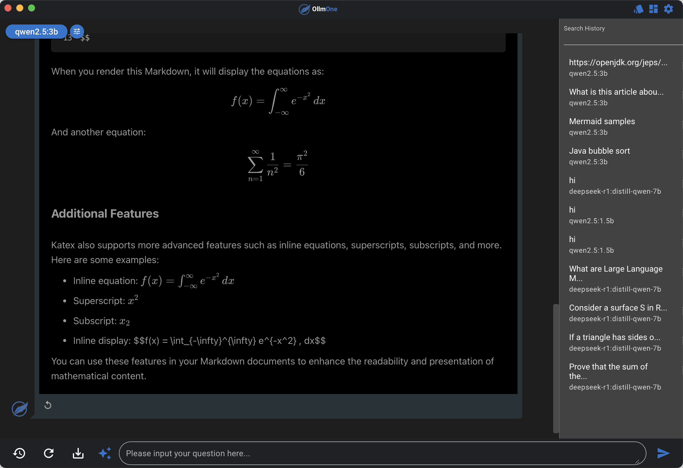 Supports Markdown Rendering, including Mermaid Diagram, Katex Formula and Code Highlighting.